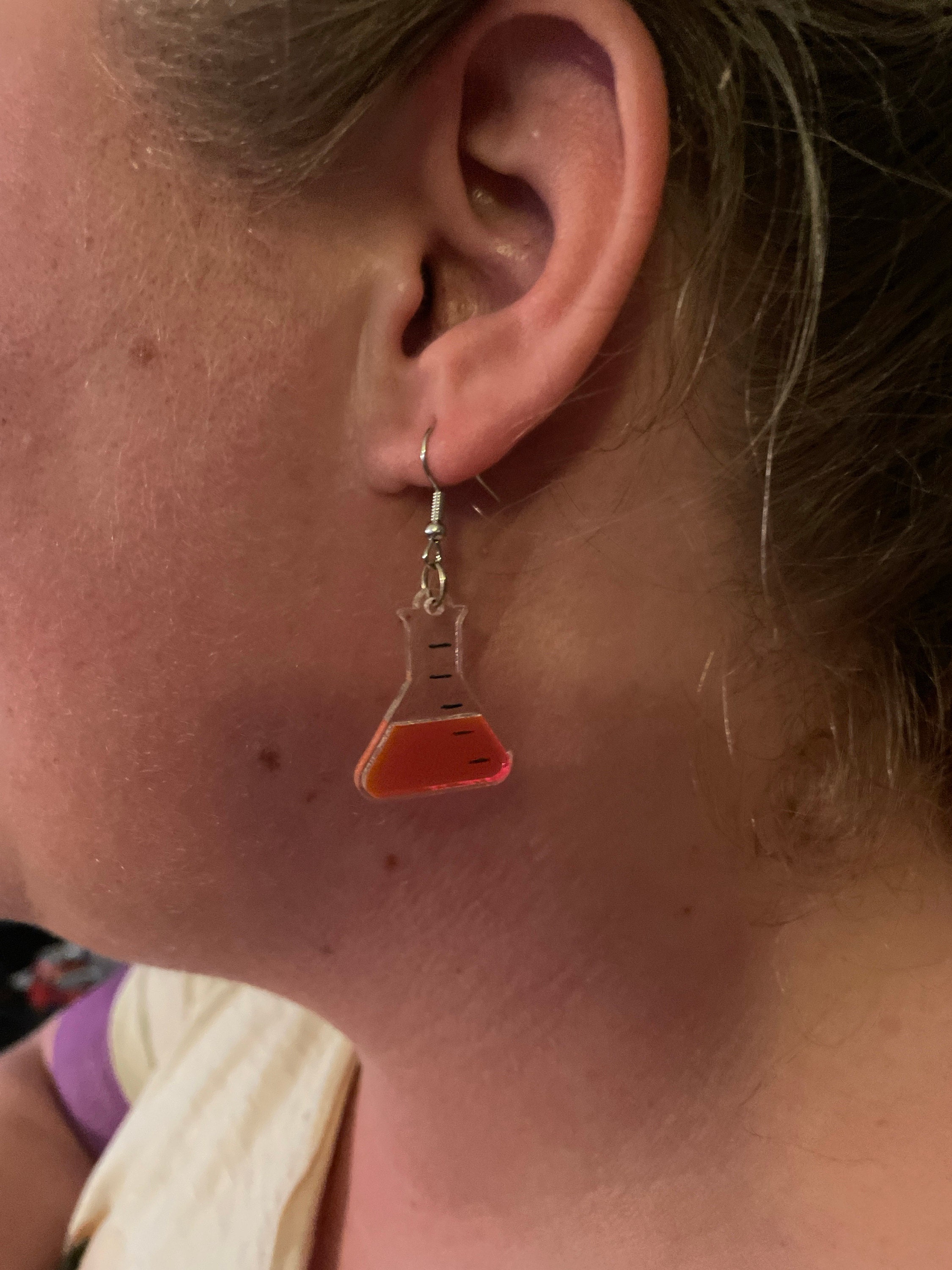 Earrings were cut using 3mm acrylic and painted with acrylic paint.