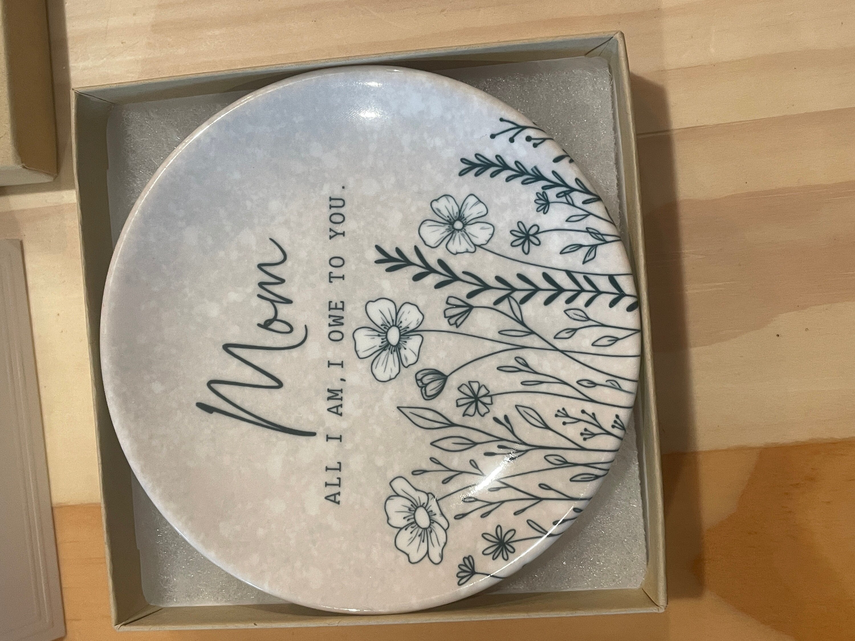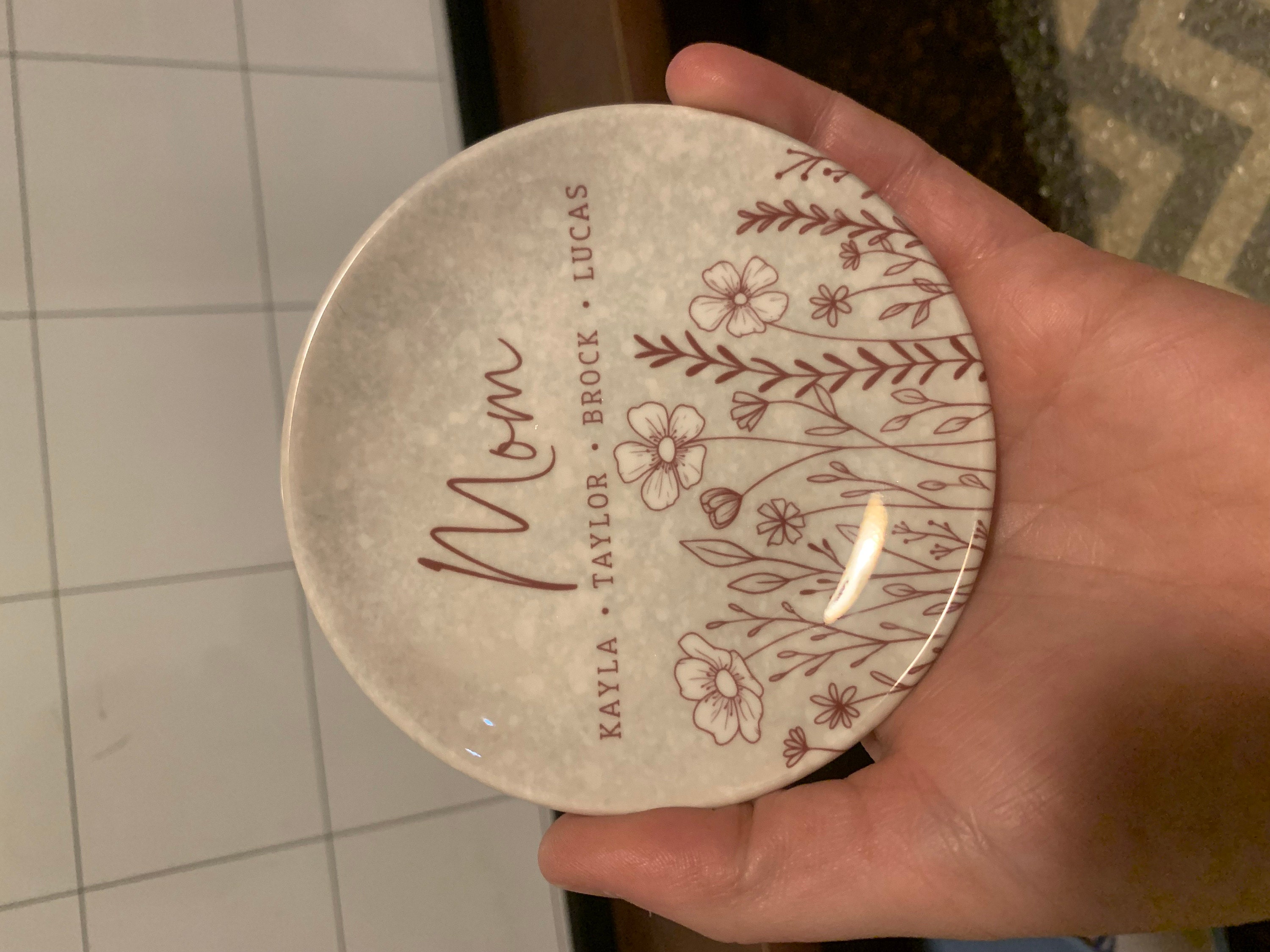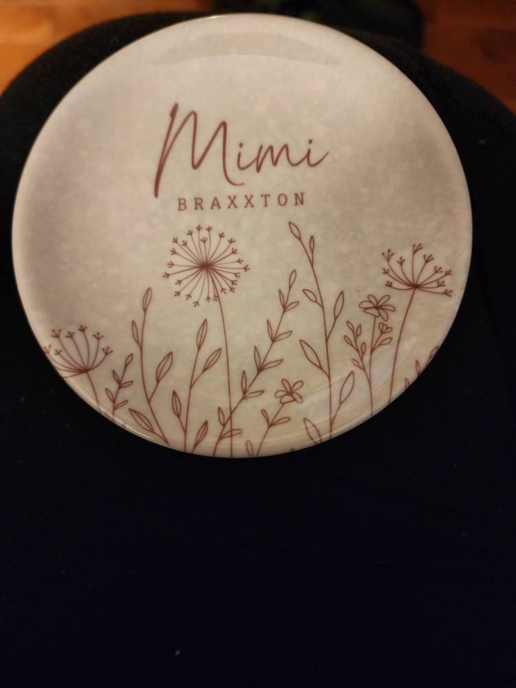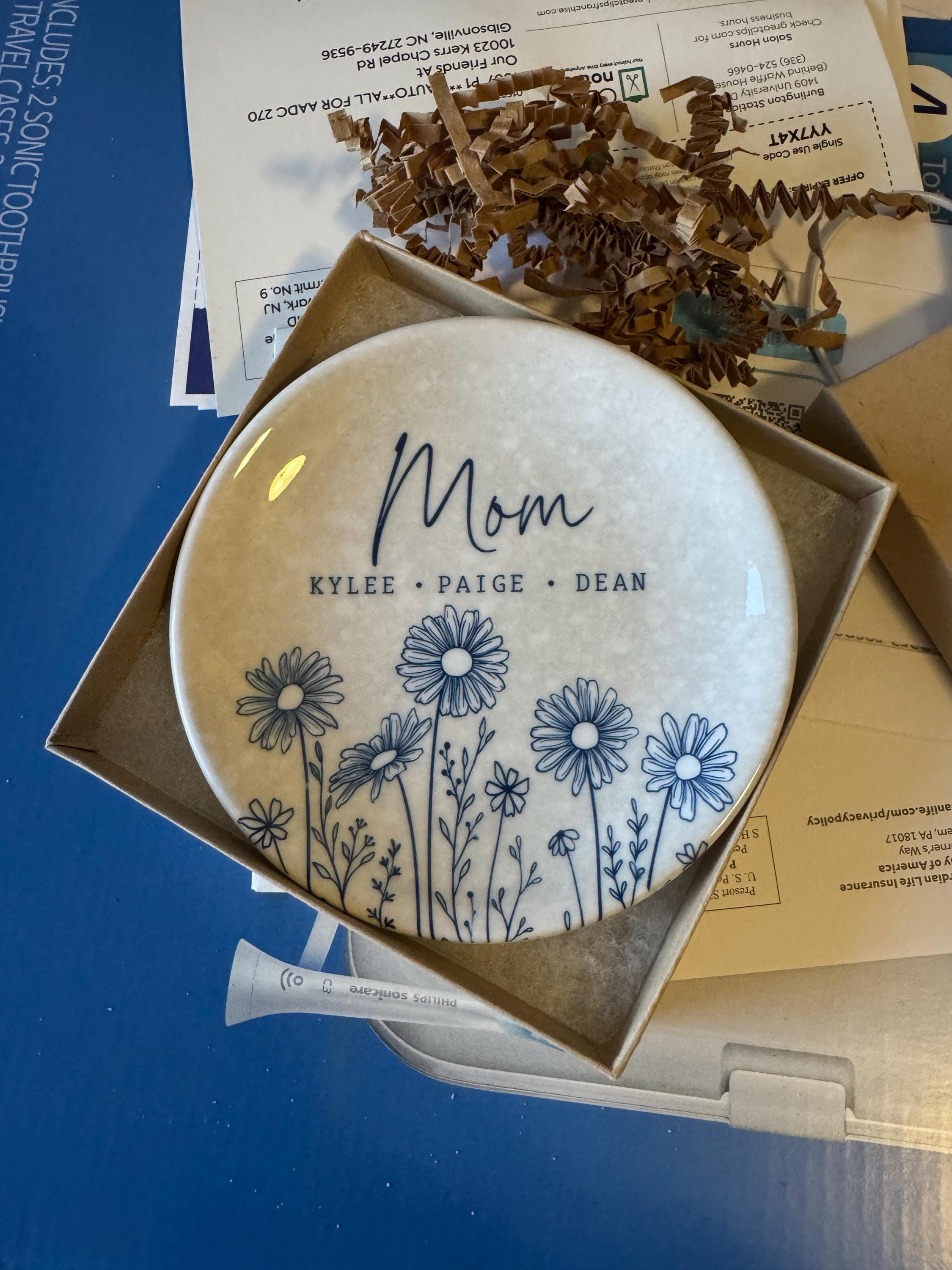 Personalized Wildflower Ring Plates are the perfect gift for Mom, Grandma, and new moms. Our ceramic jewelry plates are high quality and instantly become heirlooms. You can personalize your ring plate with names, titles, colors, and wildflower patterns. Each ring plate is fired in our studio kiln in Pennsylvania.