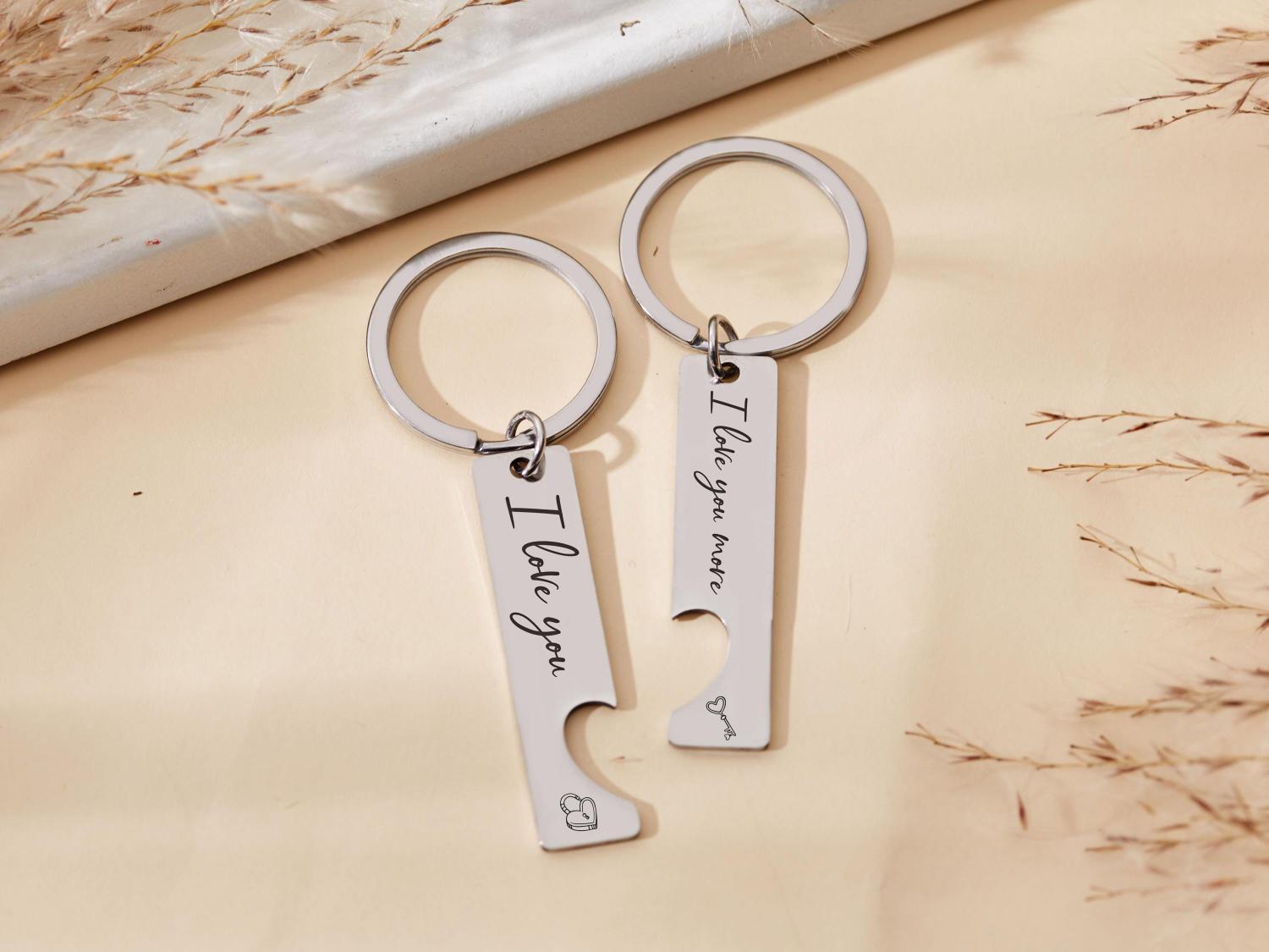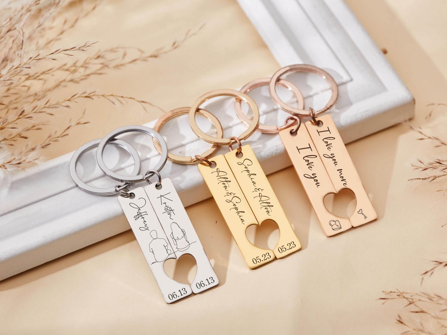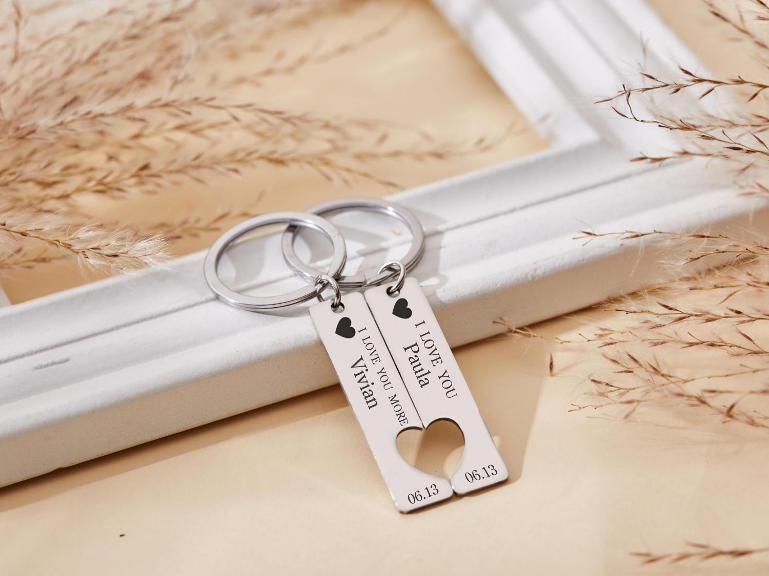 Personalized Engraved Heart Keychain Set – Cherish Your Moments Forever